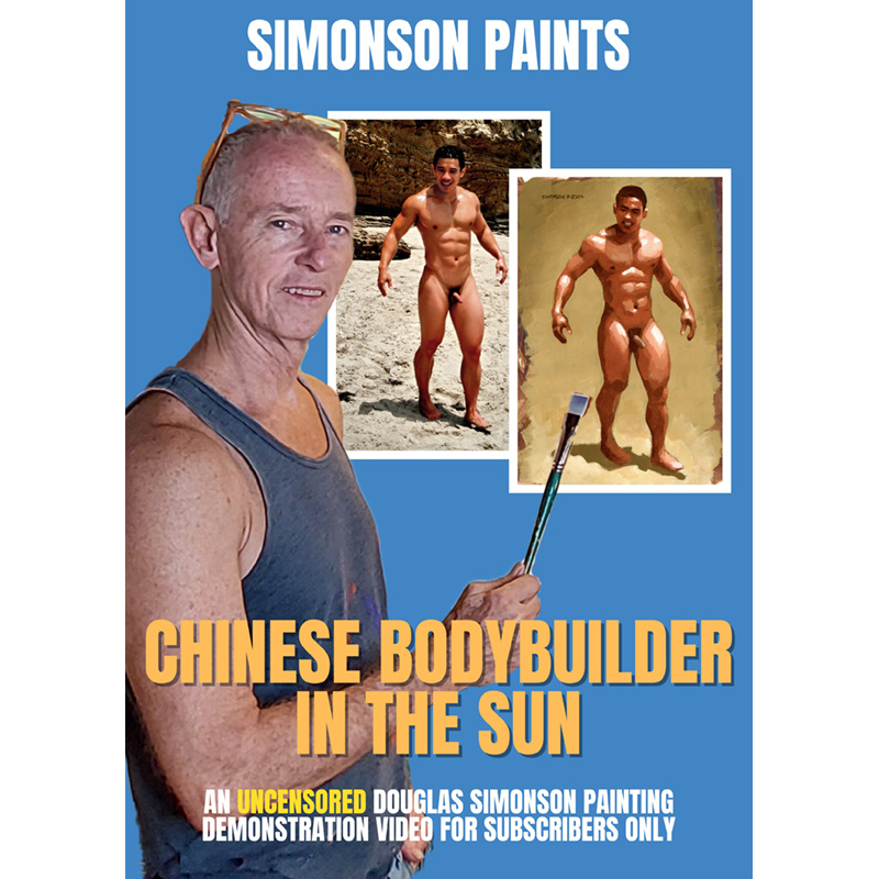 Simonson paints a nude Asian bodybuilder on the beach at Malibu – painting demonstration.