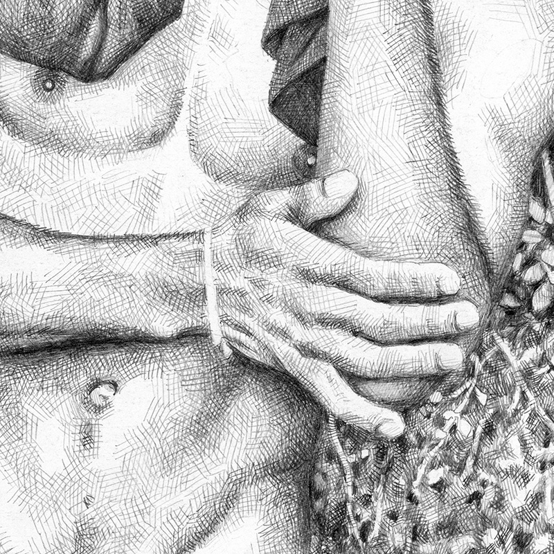 Handsome young Afro-Brazilian guy with semi-erection in jungle setting.