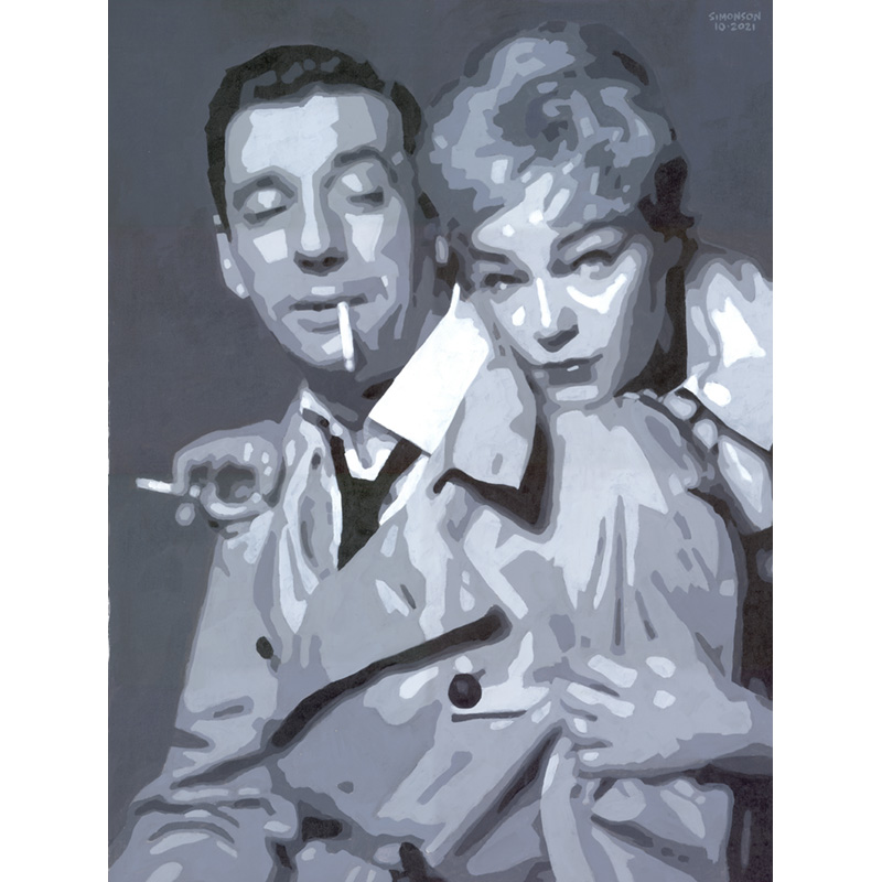 Black-and-whte portrait of Yves Montand and Simone Signoret ca. 1965.