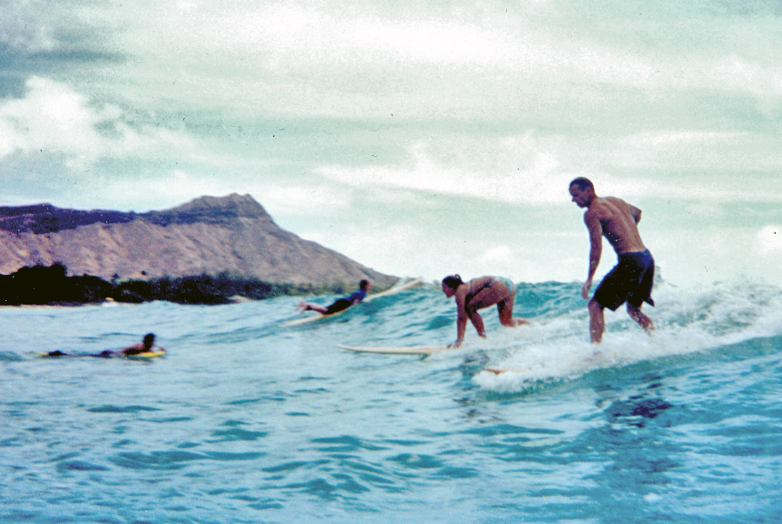 Top: Surfing in Waikiki; Bottom: Laurens modeled for me at a secluded Oahu beach.