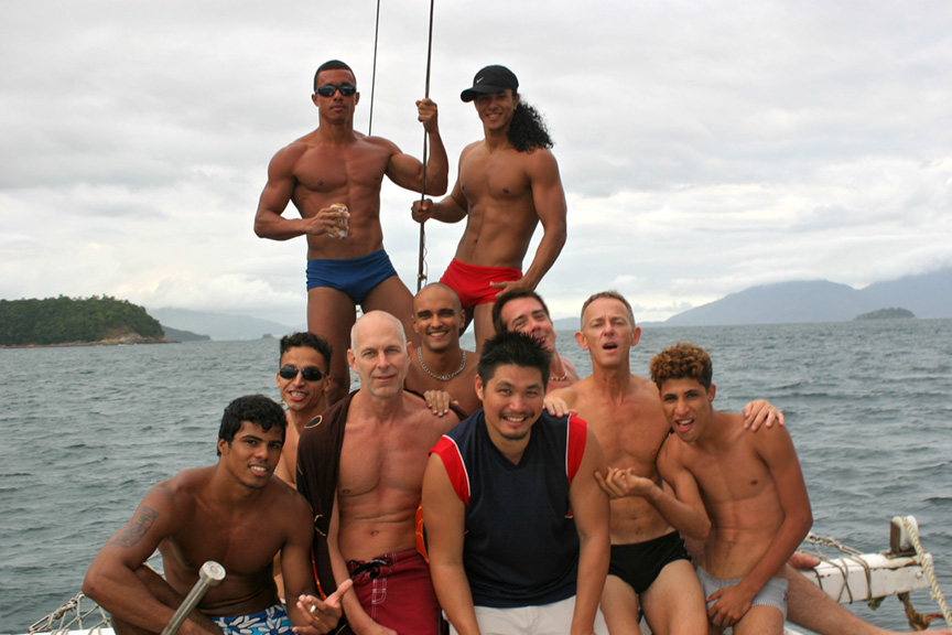 2005 was another big year for photo shoots. I traveled again to Brazil, this time with a bunch of Hawaii friends. In Brazil I met up with Marcus again, and a new model Sandro, and I took them and all my friends down to Angra dos Reis, where I chartered a boat and we all had a 2-day adventure in the 300-plus islands of the Costa Verde. I also met Eduardo on that trip and photographed him on the terrace of my Rio hotel room. Back in Hawaii, I became friends with a handsome Marine named Victor, and he modeled for me at a secluded Oahu beach.